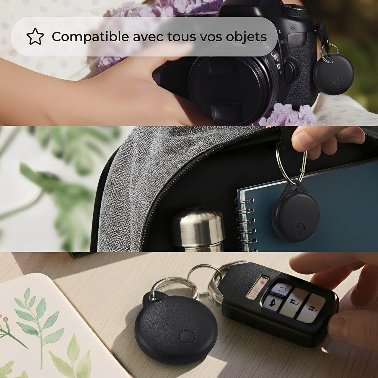 Glissez-le sur vos clés, dans votre portefeuille, votre sac ou n’importe quel objet essentiel. En cas de perte, vous pouvez :